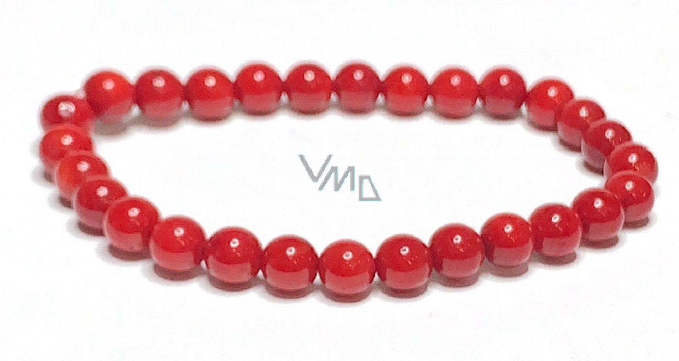 Koralle Bamgbus rot Armband elastisch Naturstein, Kugel 6 mm / 16 - 17 cm