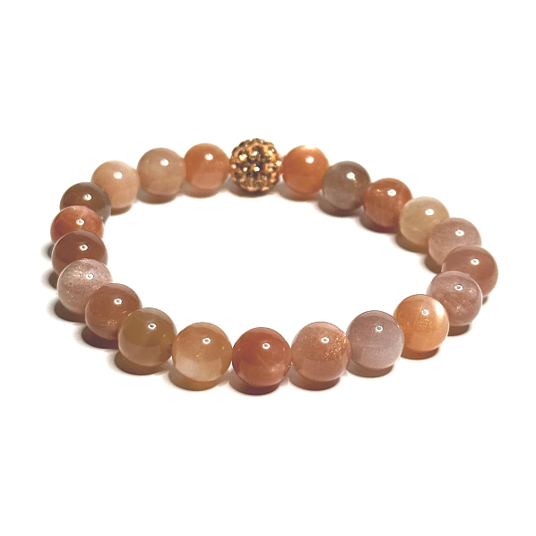 Mondstein, auch Ringelblume genannt. Der Stein zeichnet sich durch sein subtiles, schaukelndes Funkeln aus, das durch die richtige Ausrichtung des Steins beim Schleifen noch verstärkt wird. Die orangefarbene Ringelblume besitzt einen schönen Perlglanz. Sie stammt ursprünglich aus Indien.