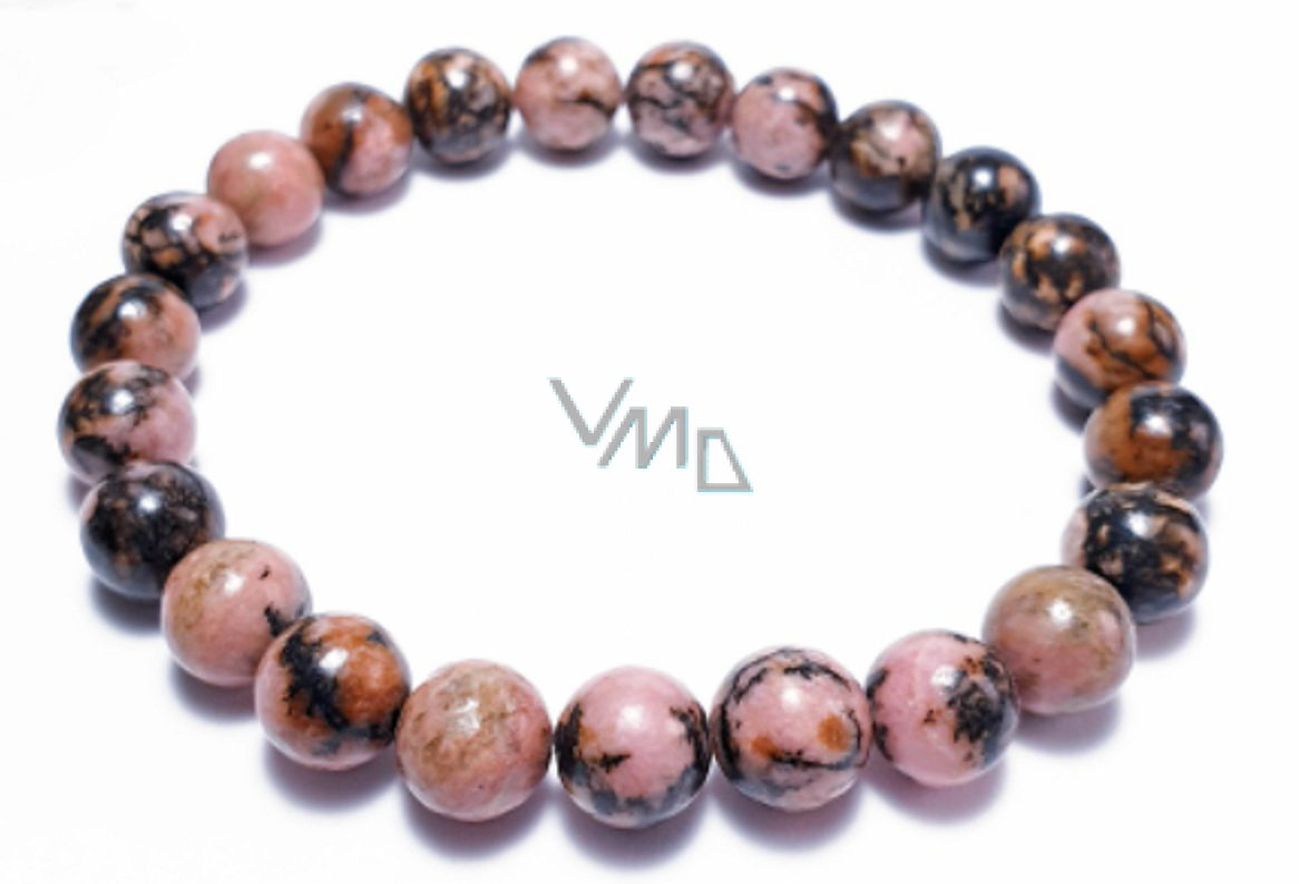 Rhodonit dunkler Armband elastischer Naturstein, Kugel 8 mm / 16-17 cm, Stein der Vergebung