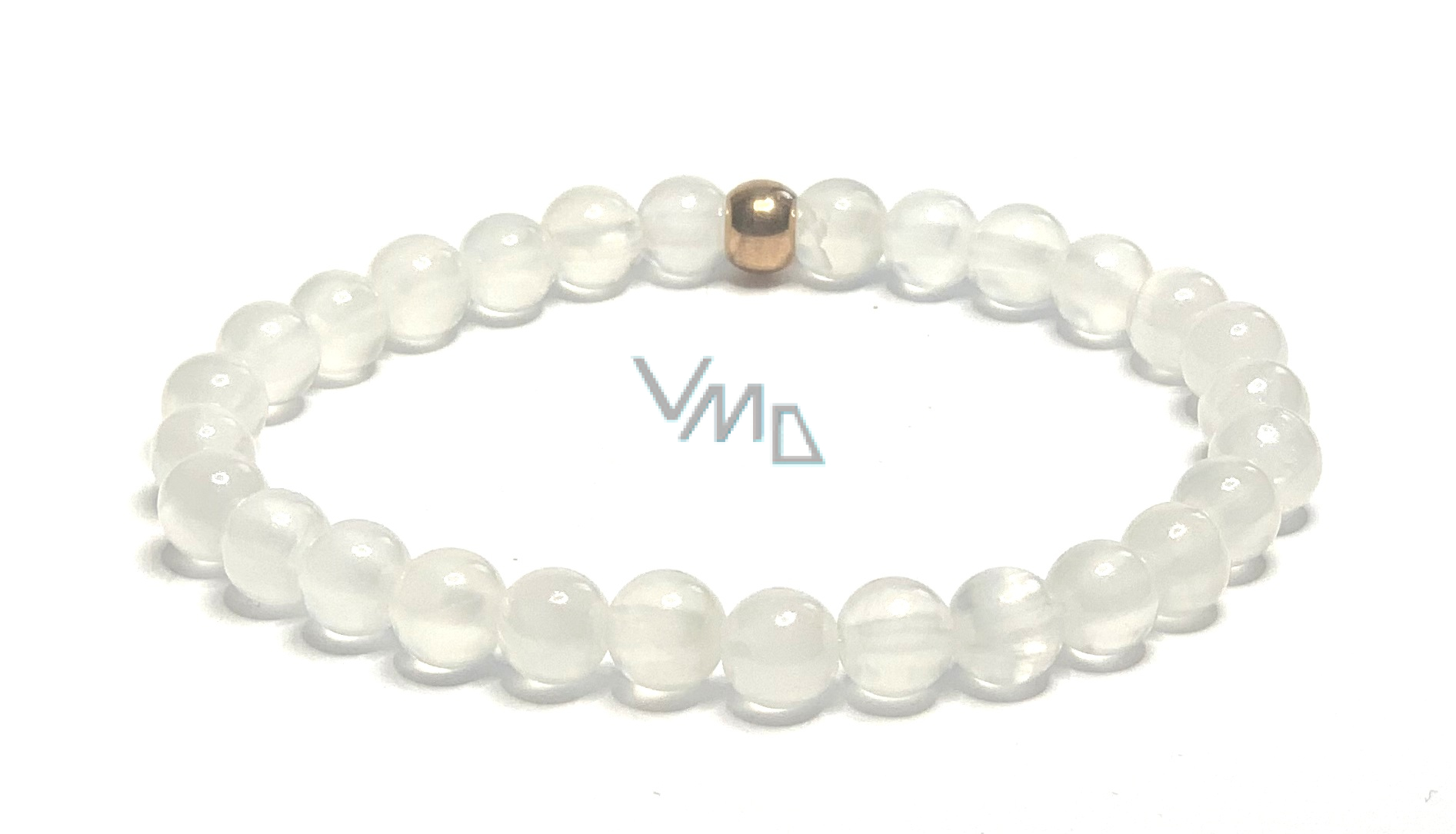 Selenit/Alabaster-Armband elastischer Naturstein, Kugel 6 mm / 16 - 17 cm, Engelsenergie