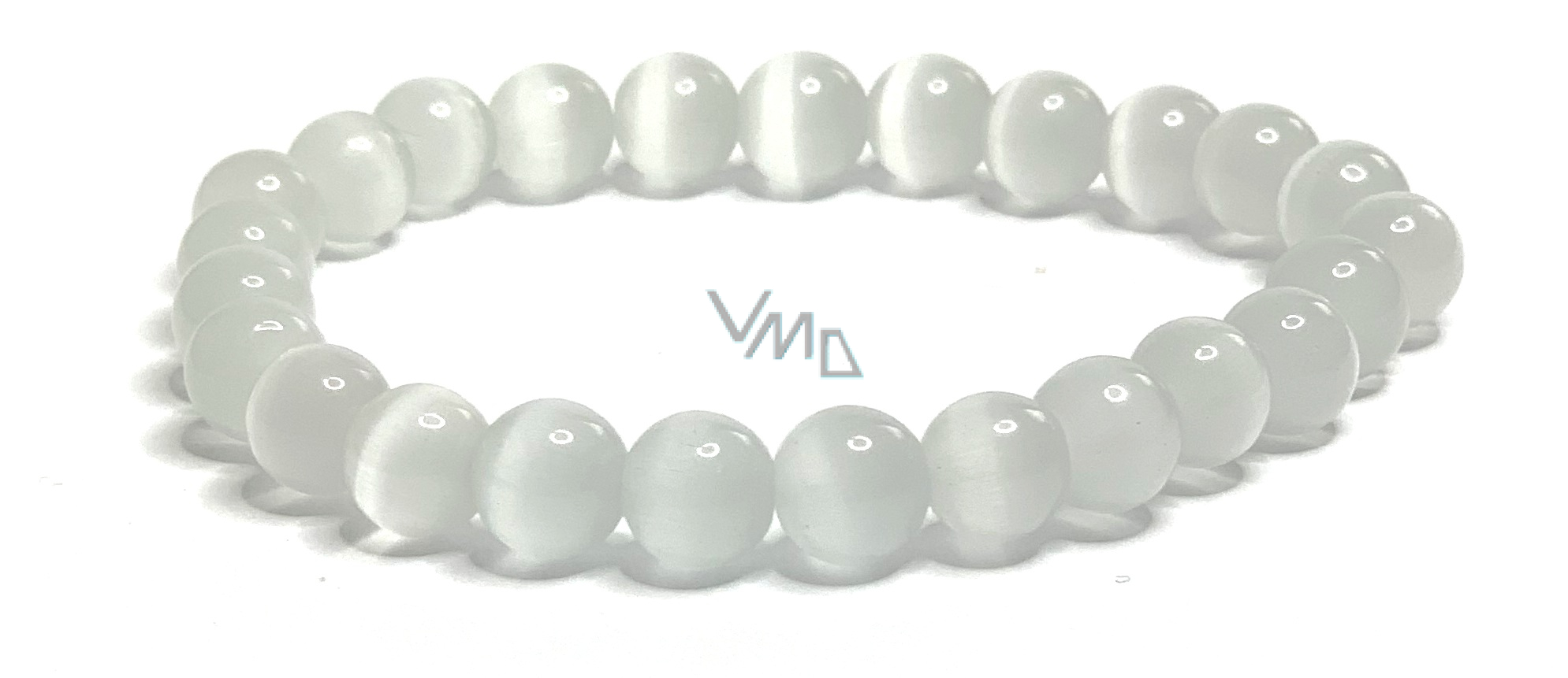 Selenit/Alabaster-Armband elastischer Naturstein, Kugel 8 mm / 16 - 17 cm, Engelsenergie