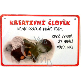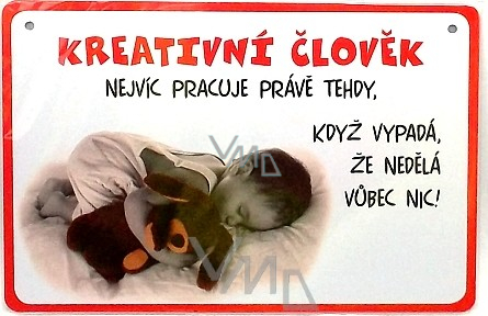 Legrační cedulka s humorem po česku je originální dárek, kterým určitě každého rozesmějete. Můžete si vybrat z širší oblasti témat, např. práce, škola, domácnost, lidé a další. Touto cedulkou ukážete lidem ve Vašem okolí, že máte smysl pro legraci a dokážete si ji stále udržet. Tímto zároveň pobavíte i své přátelé a celé okolí. Cedulky jsou z pevného lesklého plastu s připravenými otvory pro zavěšení. Cedulku lze pověsit na zeď či postavit na stůl.