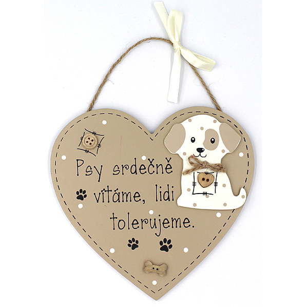 Nekupto Mazlíčci Dřevěná cedulka Psy srdečně vítáme, lidi tolerujeme ...17 x 17 cm
