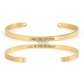 Edelstahlarmband vergoldet mit beidseitiger Gravur Ich bin der Sturm, offene Manschette, 4 mm