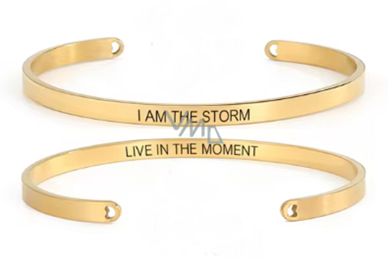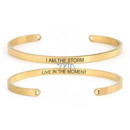 Edelstahlarmband vergoldet mit beidseitiger Gravur Ich bin der Sturm, offene Manschette, 4 mm