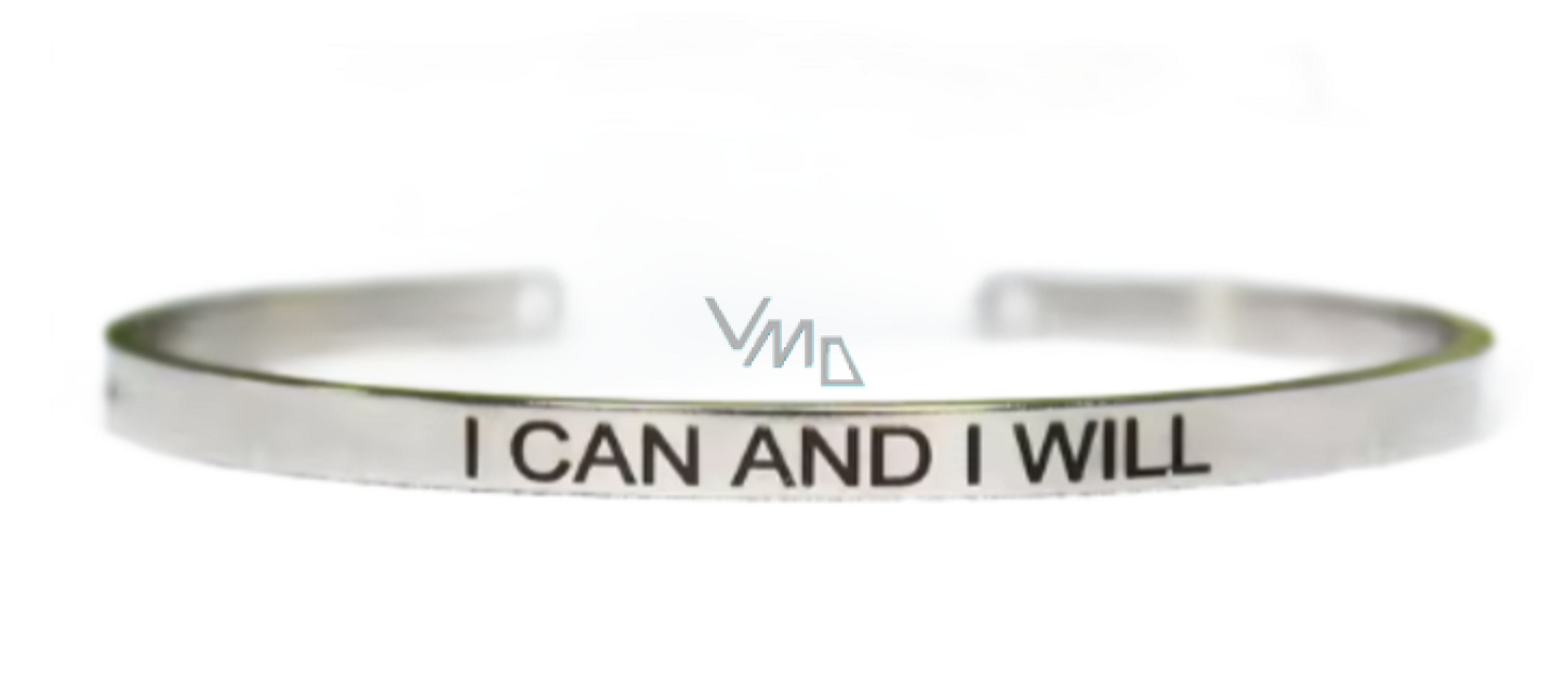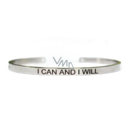 Edelstahlarmband silber mit Gravur Ich kann und werde, offene Manschette, 4 mm