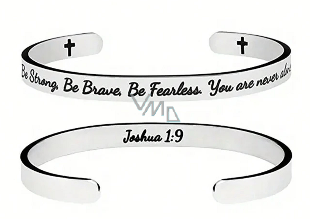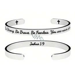 Edelstahlarmband silber mit Gravur Sei stark, sei mutig..., offene Manschette, 6 mm