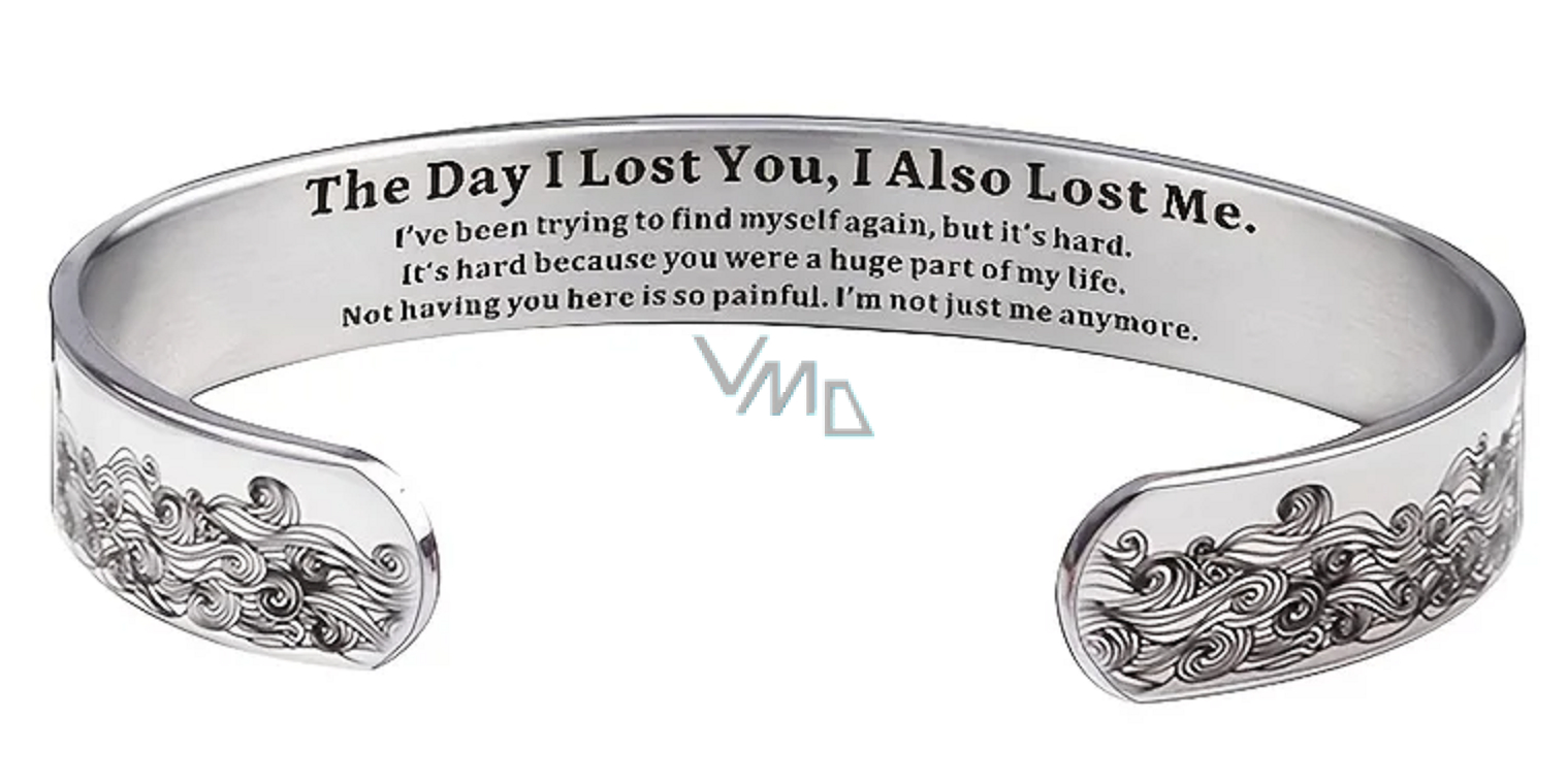 Edelstahlarmband silber mit Gravur Der Tag, an dem ich dich verlor, offene Manschette, 10 mm