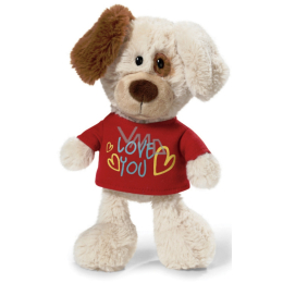 Plyšový pejsek v tričku Love You od společnosti Nici. Tato společnost má nejpřísnější požadavky na kvalitu a bezpečnost při hraní. Řadí se mezi nejuznávanější, nejkvalitnější a nejlépe hodnocené výrobky plyšových hraček a jiných předmětů na světě.