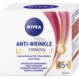 Welche Frau wünscht sich nicht für ihr ganzes Leben straffe Haut? Die richtige Pflege kann Wunder wirken! Greifen Sie zu der intensiven Formel mit UV-Filtern, Sheabutter und Aprikosenkernöl. Ihre Belohnung wird ein sichtbar strafferer Teint sein, der gleichzeitig vor der Entstehung neuer Falten durch UV-Strahlen geschützt ist. Verlassen Sie sich auf die bewährte Pflege für straffere und glattere Haut - NIVEA Festigende Tagescreme gegen Falten 45+.