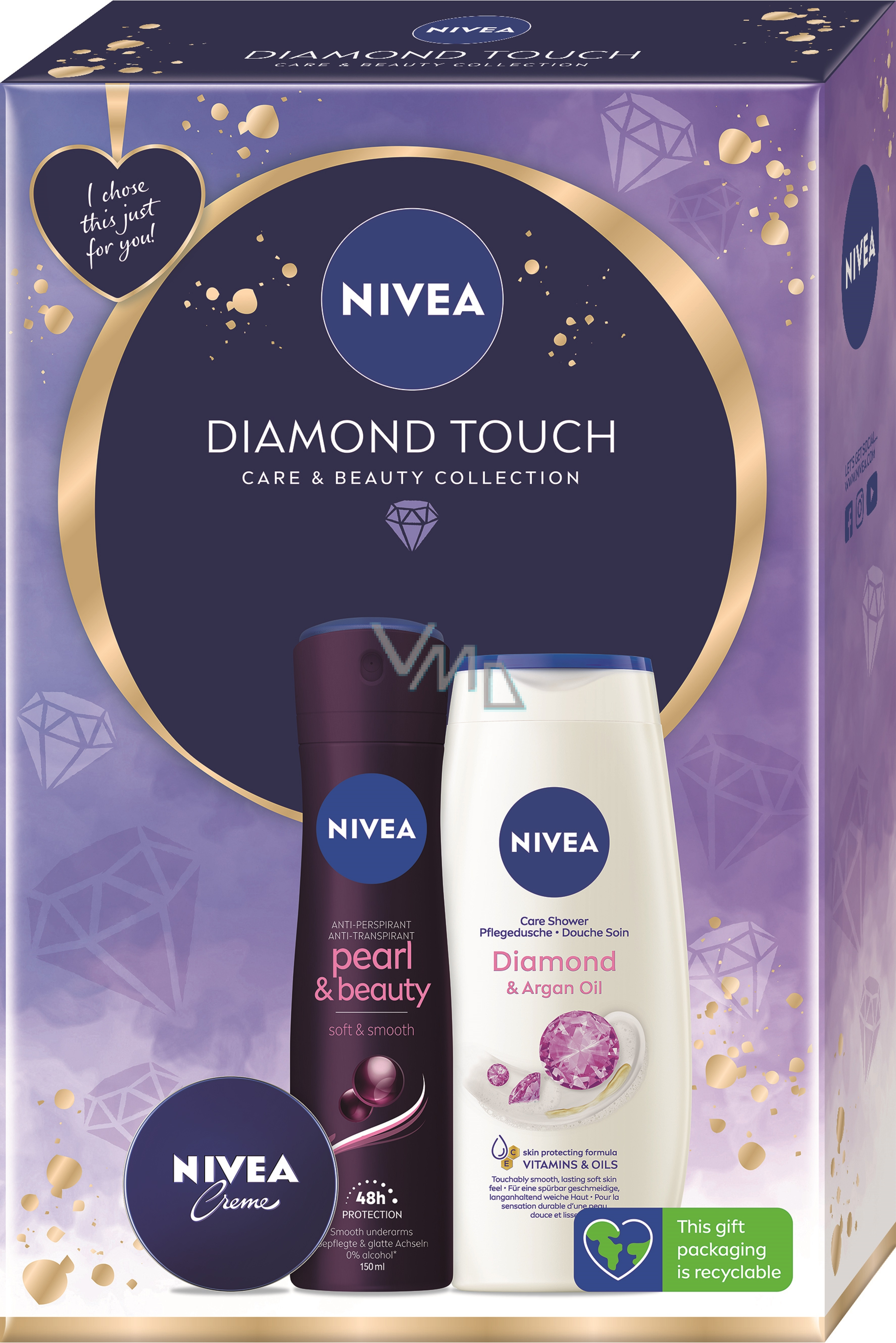 Nivea Diamond Touch Creme für die Basispflege 30 ml + Pearl & Beauty Antitranspirant Deodorant Spray 150 ml + Diamond & Argan Oil Duschgel 250 ml, Kosmetikset für Frauen