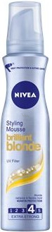Zajistí svěžest a zářivost blond barvy Vašich vlasů a extra silnou fixaci účesu. Speciální složení s UV filtry chrání vlasy před ztrátou keratinu. Nivea pěnové tužidlo pro blond vlasy Brilliant Blonde zajistí svěžest a zářivost blond barvy Vašich vlasů a extra silnou fixaci účesu. Chrání vlasy během fénování a teplo proměňuje v extra péči. Dodá vlasům objem a zajistí dlouhotrvající tvar účesu.