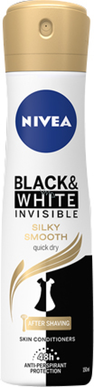 Keine gereizten Achseln mehr. Hautweichheit der Achseln auch nach der Rasur. Dank der neuen Formel, die die Haut pflegt, können Sie Ihren Schutz gegen Schweiß und Geruch sofort nach der Rasur auftragen und loslegen! Jeder Ihrer Schritte wird dann von Frische und einem Gefühl von Zartheit begleitet, das 48 Stunden anhält. Wählen Sie eine alkoholfreie Lösung, die keine Rückstände auf Ihrer Kleidung hinterlässt und so sinnlich duftet - NIVEA Spray Antitranspirant B&W Invisible Silky Smooth.