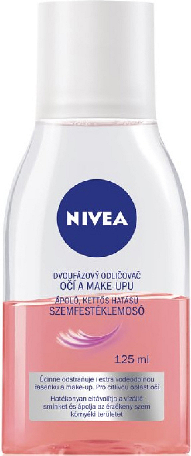 Nivea® Zweiphasiger Augen- und Make-up-Entferner mit biologischem Rosenwasser und Öl entfernt auch wasserfestes Make-up. Augenärztlich getestet und zugelassen.