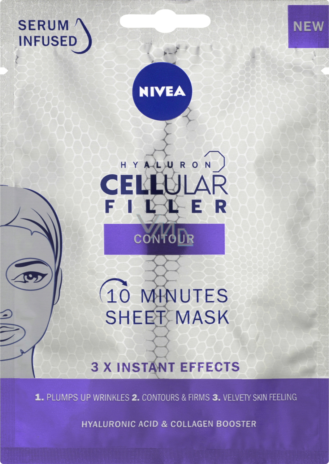 Co se dá zvládnout během 10 minut? Dojít přes ulici na nákup, vybrat si online nové šaty… anebo se zbavit vrásek! Vyzkoušejte složení s Kyselinou Hyaluronovou a Kolagenovým boosterem, které vyplňuje Vrásky, zvýrazňuje kontury obličeje a zpevňuje pleť. Jako bonus získáte navíc i sametově hebkou pleť. Přesně tak funguje oblíbená - NIVEA 10minutová textilní Maska HYALURON CELLULAR FILLER.