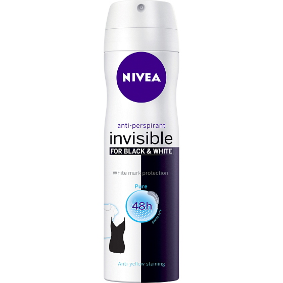 Erleben Sie einen wirklich effektiven Antitranspirant mit frischem, leichtem Duft, der gegen Schweiß und Geruch schützt und gleichzeitig Ihre Kleidung schont. Die NIVEA Labore haben als erste eine Formel für Antitranspirantien mit einer einzigartigen patentierten Technologie entwickelt, die das Entstehen weißer Rückstände auf schwarzer Kleidung verhindert und hilft, der Bildung von gelben Flecken vorzubeugen, die im Laufe der Zeit auf weißer Kleidung auftreten können.