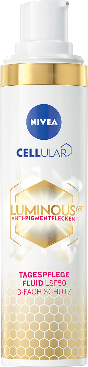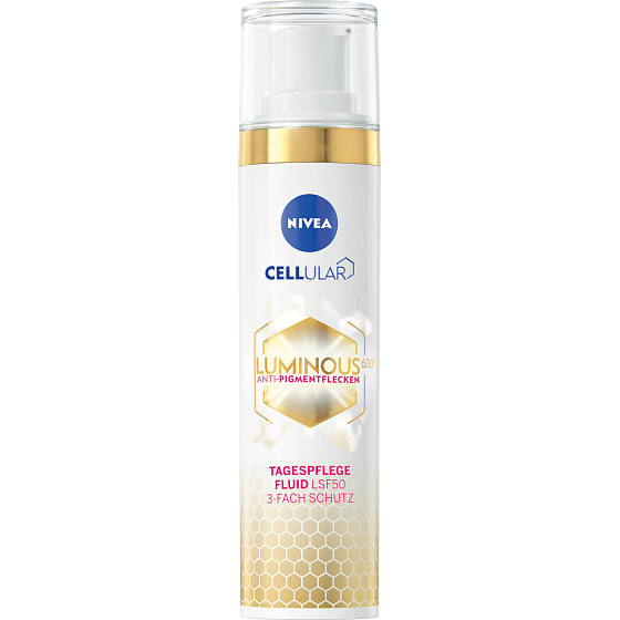 Luminous630 kann Ihre Sorgen vertreiben. Es enthält eine Dreifachkombination von Wirkstoffen, die Flecken reduziert und deren erneutes Auftreten verhindert. Vitamin E verleiht der Haut Elastizität, Hyaluronsäure sorgt für Festigkeit, UV-Filter bieten Schutz vor der Sonne, und alle Zutaten zusammen konzentrieren sich auf die Entfernung von Pigmentflecken: NIVEA Tagescreme gegen Pigmentflecken Cellular Luminous630 mit SPF 50.