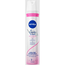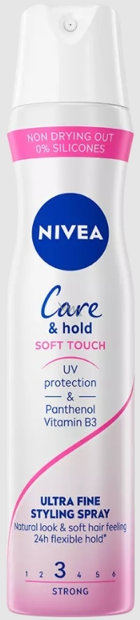 Nivea Care & hold lak na vlasy Soft Touch s panthenolem a vitaminem B3 posiluje vlasy, chrání je a nevysušuje. Dodá vlasům až 24hodinovou flexibilní fixaci. Pro přirozené a krásné vlasy!