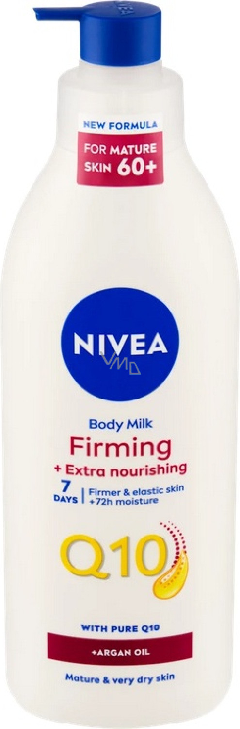 Nivea Q10 Extra nahrende und straffende Körpermilch ist speziell für reife Haut entwickelt, die intensive Pflege und Straffung benötigt. Sie kombiniert Coenzym Q10 mit organischem Arganöl, das der Haut Energie verleiht, ihre Regeneration unterstützt und die Elastizität erhöht.