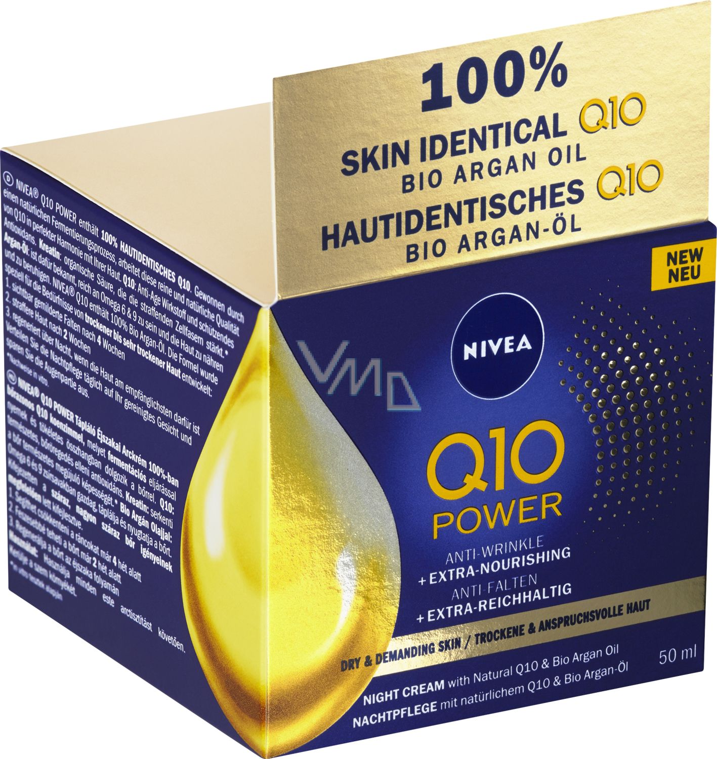 Schlafen Sie sich schön. Die intensiv pflegende Formel, entwickelt für trockene und beanspruchte Haut, unterstützt Sie bei der natürlichen Regeneration der Hautzellen. Die Kombination mit der 100% hautidentischen Q10, Kreatin und bio-aromatischem Arganöl reduziert Falten, strafft, beruhigt und nährt Ihre Haut. Wählen Sie einen effektiven Schutz gegen das Altern und freuen Sie sich bereits nach 2 Wochen über die ersten sichtbaren Ergebnisse - NIVEA Nährende Nachtcreme gegen Falten Q10 POWER.