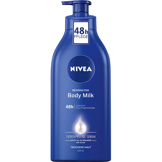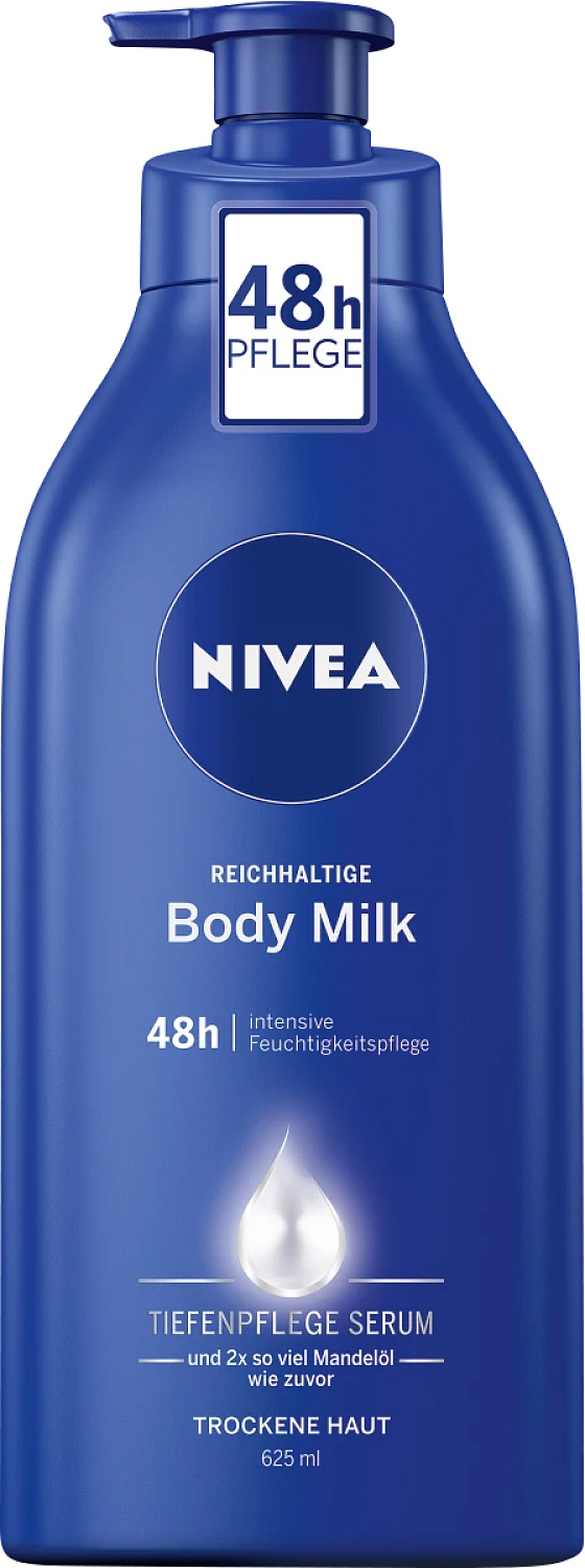 Vitamin E hat wunderbare Wirkungen nicht nur auf die Qualität unserer Haut und Haare, sondern auch auf die Haut. Er verhindert nämlich die vorzeitige Hautalterung, sodass Ihre Haut in jedem Alter schön straff und elastisch bleibt. Mandelöl sorgt dafür, dass die Haut zart und weich im Griff ist. Die nahrhafte Körpermilch enthält außerdem einen Komplex tiefenwirksamer Feuchtigkeitsstoffe DEEP MOISTURE SERUM, der die Feuchtigkeit in der Haut einschließt, sodass sie bis zu 48 Stunden hydratisiert bleibt. Also probieren Sie es aus: NIVEA Nahrhafte Körpermilch.