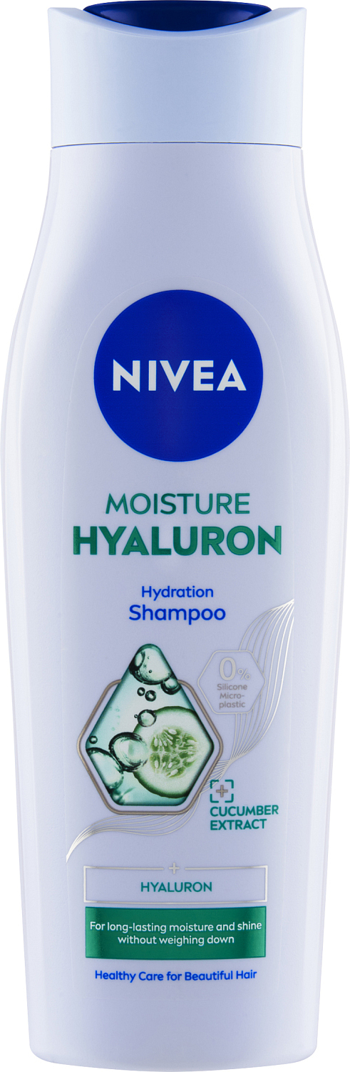 Nivea Feuchtigkeitsspendendes Shampoo Hyaluron mit Gurkenextrakt und Hyaluronsäure für sofortige Hydratation und Wiederherstellung des Glanzes der Haare.