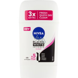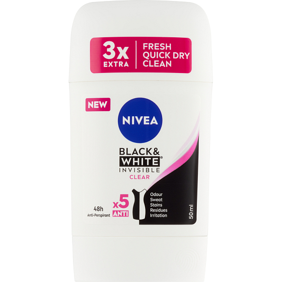 Der Invisible For Black & White Clear Deo-Stick mit einem attraktiven leichten Duft bietet zuverlässigen Schutz gegen Schwitzen, ohne weiße Rückstände und gelbe Flecken auf der Kleidung.