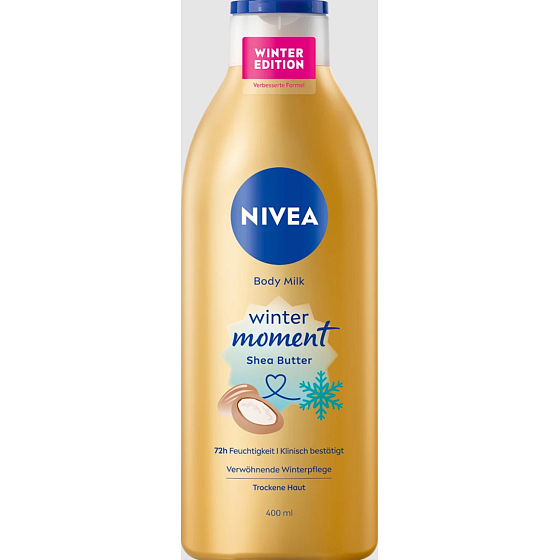 verwöhnen Sie Ihre Haut mit der winterlichen Pflege, die voller Sanftheit und Nährstoffe steckt, mit der NIVEA Winter Moment Körpermilch. Die speziell entwickelte Formel mit Mandelöl und Sheabutter spendet intensive Feuchtigkeit, schützt vor Austrocknung und hinterlässt die Haut samtig weich, selbst in den kalten Monaten.
