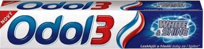 Zubní pasta Odol 3 White & Shine pro lesklejší a hladší zuby za 1 týden. (Srovnání s Odol 3 original, při pravidelném čištění.) Obsahuje speciální mikroskopické perličky, které zuby čistí, bělí i leští a zároveň zanechává kolem zubů neviditelnou bariéru. Je klinicky dokázáno, že pomáhá udržet vaše zuby déle bělejší a lesklejší.