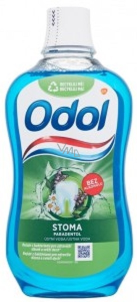Ústní voda Odol Stoma Paradentol ničí 99% bakterií, při pravidelném používání pomáhá chránit dásně, zanechává svěží dech a pomáhá chránit zuby před vznikem zubního kazu. Díky novému složení bez alkoholu a barviv je vhodná pro celou rodinu.