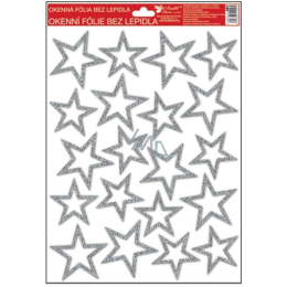 Fensterfolie ohne Kleber mit silbernen Glitzersternen 33,5 x 26 cm