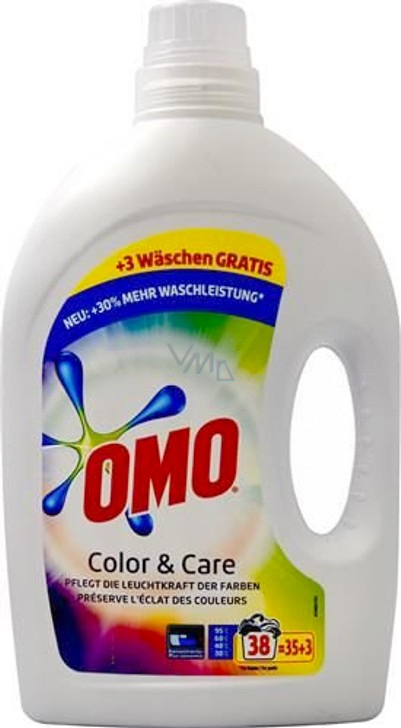 Prací Gel Omo Color & Care je určen na barevné prádlo. Gel poskytuje o 30% vyšší prací účinnost a dbá o zářivost barev.