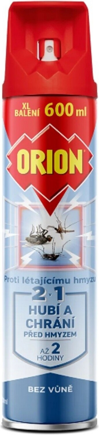 Orion 2v1 gegen fliegende Insekten ohne Duft, 600 ml ist ein wirksames insektizides Spray, das zur schnellen Beseitigung und zum Schutz gegen fliegende Insekten in Innenräumen gedacht ist. Es tötet sofort Fliegen, Mücken (einschließlich Tigermücken), Wespen und andere und schafft gleichzeitig einen Schutz, der bis zu 2 Stunden anhält. Das Spray ist ohne zusätzlichen Duft, sodass es keinen unangenehmen Geruch hinterlässt.