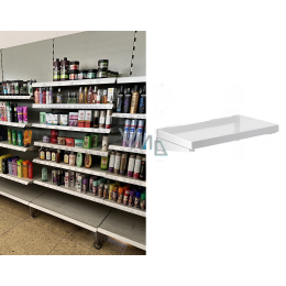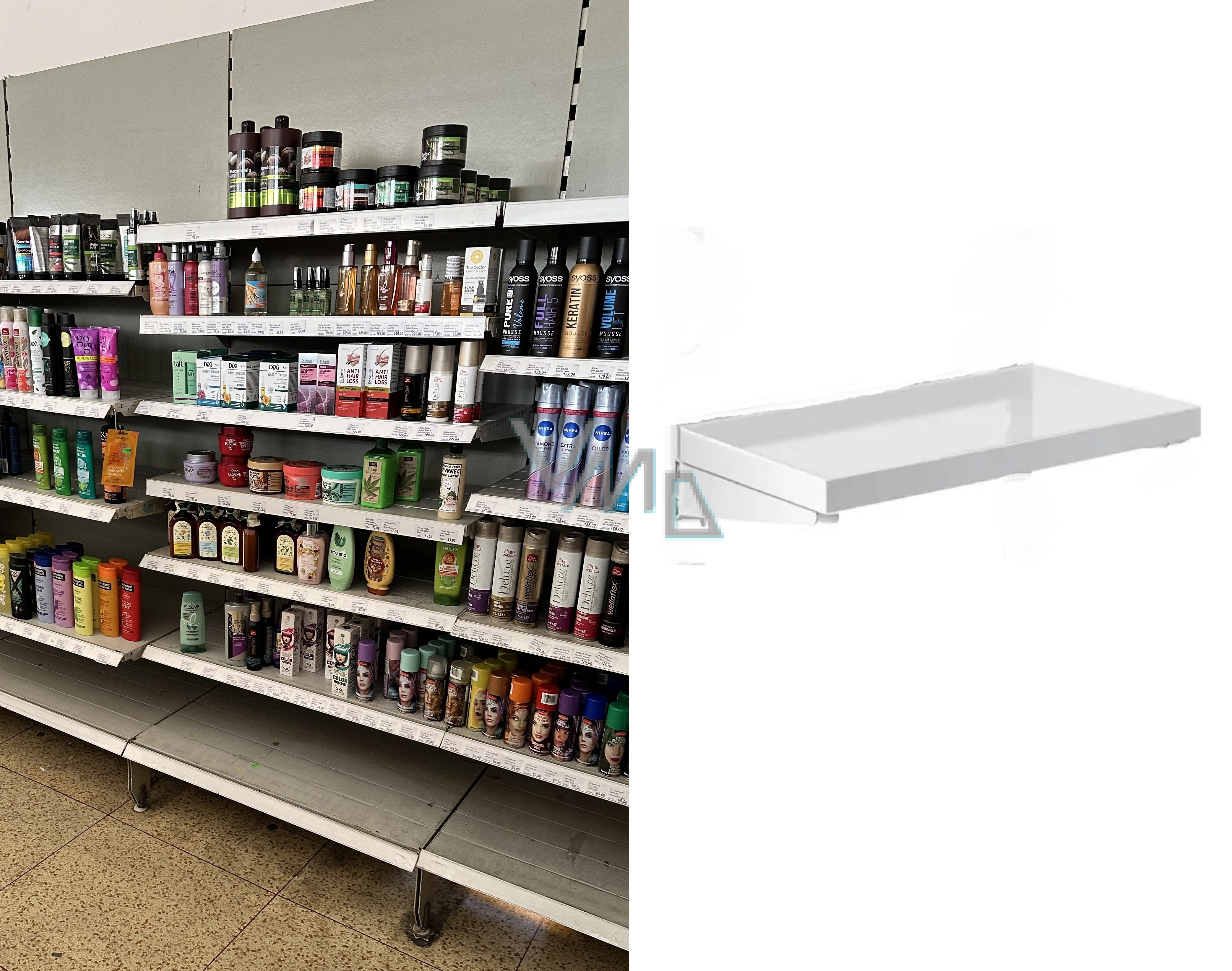Police z použitého regálu z obchodu, ideální pro vybavení obchodů, skladů a obchodních míst, garáží, sklepů. Regály jsou ve výborném technickém stavu, kvalitně zpracované.