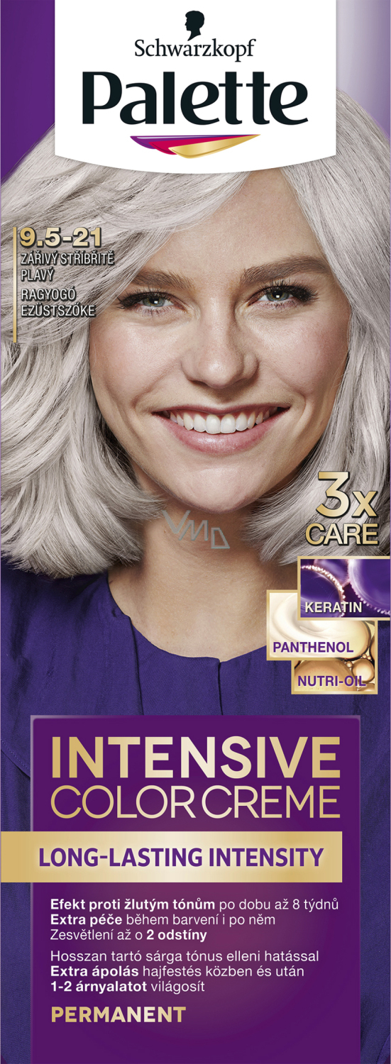 Palette Intensive Color Creme mit einem dreifachen Pflege-System für ein langanhaltendes und intensives Farbergebnis. Die Formel mit hochintensiven Pigmenten dringt tief in das Haar ein und fixiert die Farbe für einen Schutz vor dem Verblassen. Das Ergebnis ist eine langanhaltende Farbintensität für mehrere Wochen und eine Aufhellung um bis zu 2 Nuancen. Es pflegt das Haar während und nach dem Färben dank des dreifachen Pflegesystems, das Keratin, Panthenol und Nähröl enthält, und hinterlässt es weich im Griff.