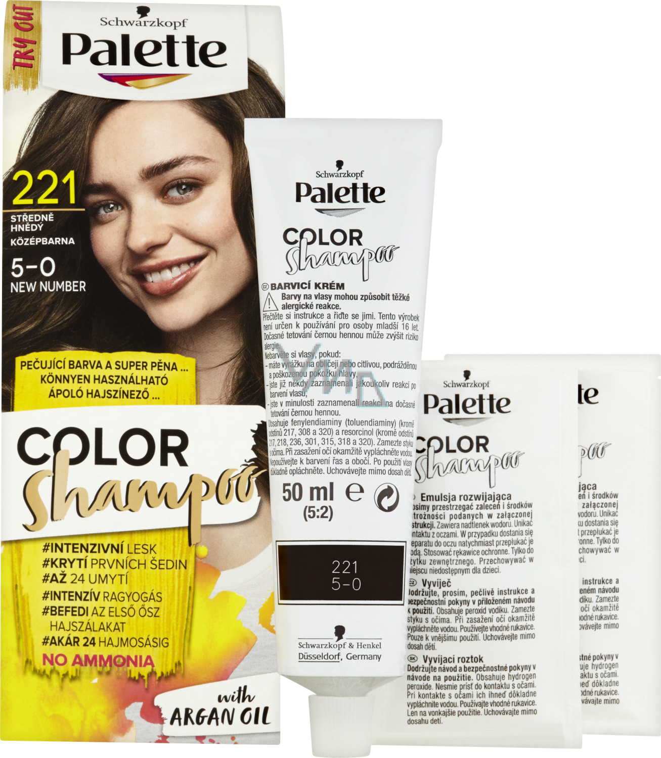 Die spezielle ammoniakfreie Formel mit Arganöl pflegt Ihr Haar bereits während des Färbens von der Wurzel bis zu den Spitzen. Die einzigartige Kombination aus Farbcreme und Entwickler mit niedriger Konzentration, außer in den Farbtönen 320, 315, 321, 308, 317, (3 %), ermöglicht es, dass das Palette Color Shampoo in Vergleich zu anderen mehr konzentrierten Entwicklern, (6 % und mehr), viel schonender ist. Ebenso sorgen die speziellen Farbpigmente in der Formel für exzellente Farbeffekte. Das Ergebnis sind natürlich lebendige, gesund aussehende Haare mit verstärktem Glanz.