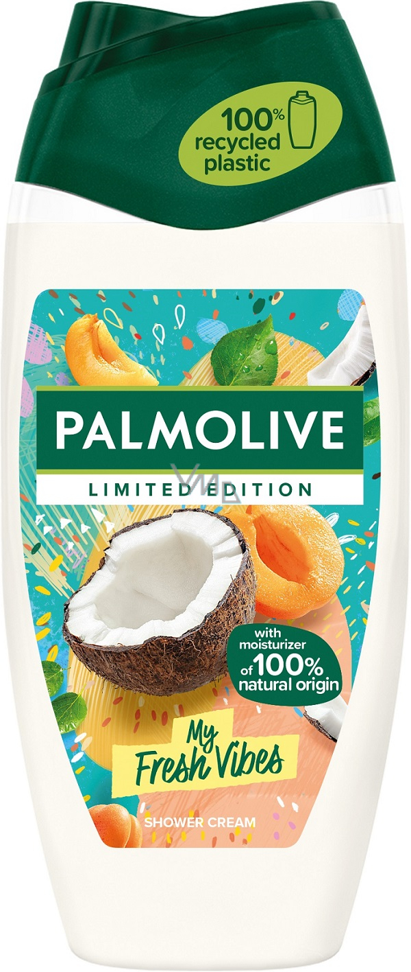 Palmolive sprchový gel My Fresh Vibes s vůní kokosu a meruňky dodává pokožce 100% hydrataci přírodního původu. Bohaté, sametově hebké složení pomáhá pokožku zvlhčit a zjemnit. Krémová textura s lahodně sladkou vůní kokosu a meruňky podtrhne povzbuzující zážitek ze sprchování. Udělejte si zářivé a barevné léto díky povzbuzujícímu zážitku ze sprchování s limitovanou edicí od značky Palmolive.