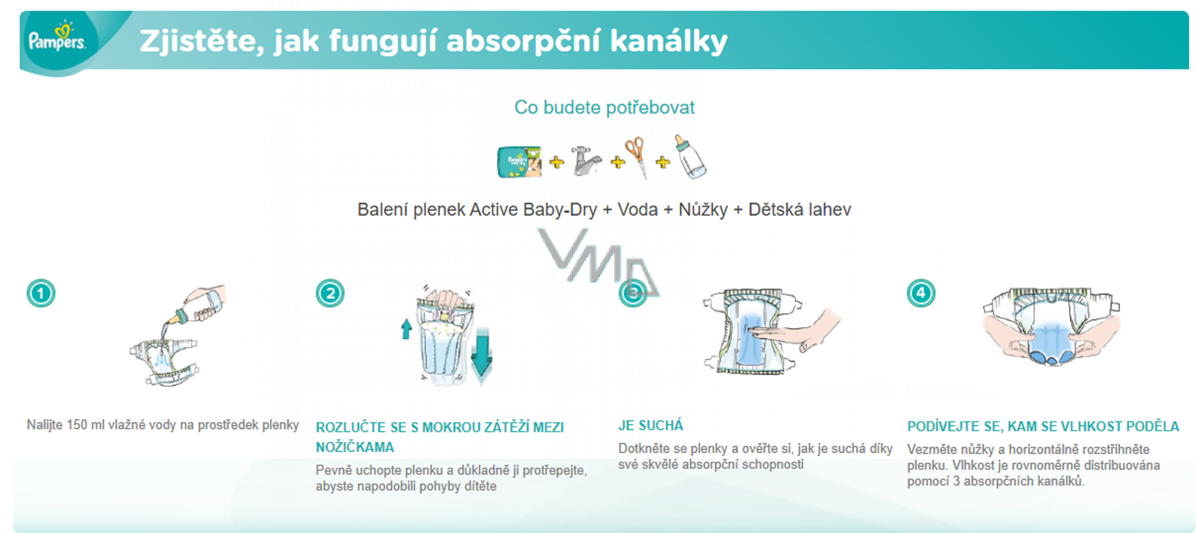 Jste připraveni na revoluční plenky? Od prvního použití plenek Pampers Baby-Dry zaregistrujete, že nejsou jako naše předchozí plenky. Jejich revoluční technologie pomáhá rovnoměrně distribuovat vlhkost pomocí 3 absorpčních kanálků a lépe ji odvádět daleko od pokožky, což ráno znamená méně mokré zátěže mezi nožičkama. Ve skutečnosti vypadají tak pohodlně a suše, že se budete divit, kam se to všechno podělo!