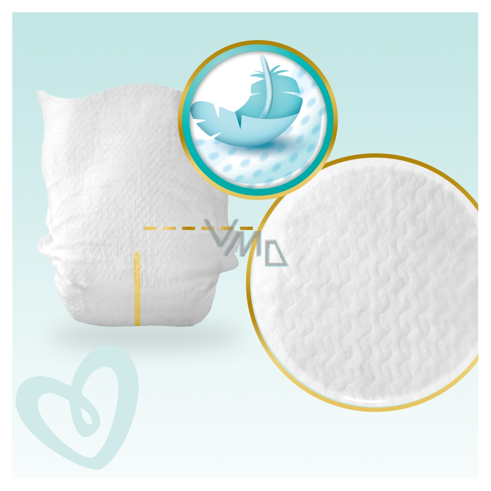 Měkké a prodyšné plenky poskytují až 12hodinový pocit sucha. Tekutina je rychle odváděna od pokožky absorpčními kanálky a mikropóry propouští čerstvý vzduch dovnitř a vlhký z plenky ven. Pokožka tak zůstává suchá a může dýchat. Díky hebkému povrchu plenky bude zadeček děťátka jako v peřince. Široký pas je jemně vykrojený a přizpůsobený pupíku. Indikátor vlhkosti změnou barvy informuje, kdy je potřeba dítě přebalit. Velikost 2 Mini pro děti 4-8 kg.