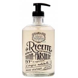 Tekuté marseillské mýdlo ve stylové skleněné lahvičce s plastovou pumpičkou, bohaté na antiseptický esenciální olej z levandule.