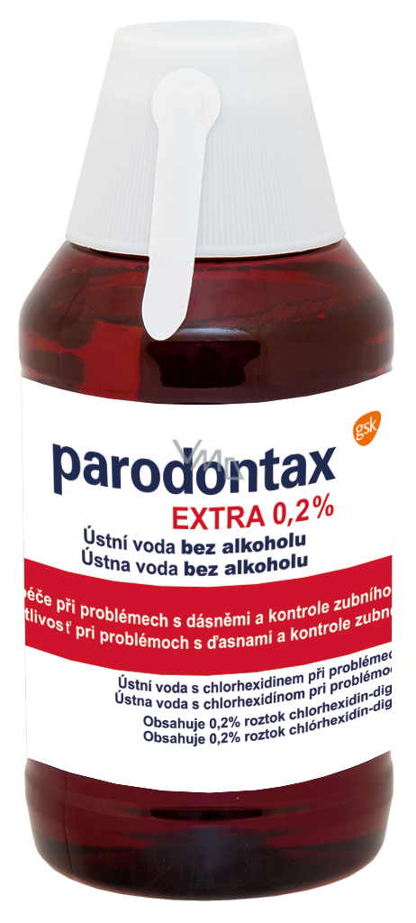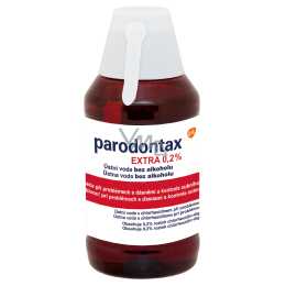 - Parodontax Extra 0,2% ústní voda pro intenzivní péči při krvácení dásní a parodontóze.