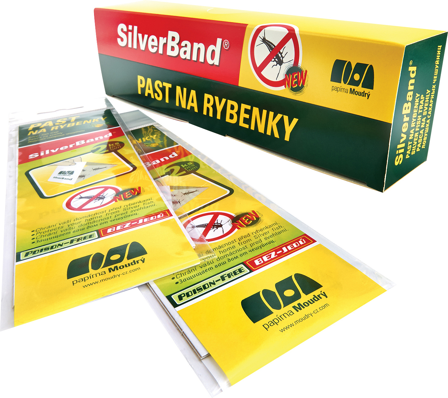 SilverBand® ist für Orte im Haushalt gedacht, an denen Silberfischchen auftreten können, und zwar in Lebensmittel-Lagerräumen, an dunklen Orten wie Vorratsräumen, Lagern und nicht zuletzt an Orten mit erhöhter Feuchtigkeit, wie Badezimmern oder Toiletten. Die Anwendung ist sehr einfach: Wir nehmen die Klebefalle aus der Verpackung, entfernen dann das Schutzpapier und falten sie in die Form eines "Hauses", anschließend richten wir den klebenden Teil der Falle so aus, dass er direkt auf dem Boden aufliegt. Diese vorbereitete Falle platzieren wir an dem Ort, wo die Schädlinge auftreten. Da die Klebefalle langfristig wirksam ist, beseitigt sie auch nachfolgende Generationen, die in Form von Eiern sogar Insektizid-Behandlungen widerstehen. Die Klebefalle SilverBand® sollte vor direktem Kontakt mit Wasser geschützt werden.