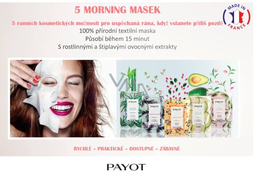Objevte Morning Masks PAYOT, ekologické látkové masky pro expresní krásu do 15 minut.