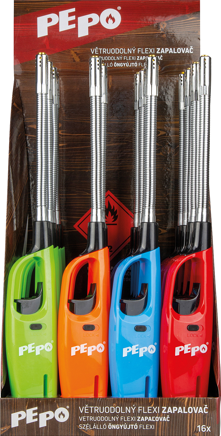 PE-PO nachfüllbares Flexi-Feuerzeug mit einstellbarer Flammenhöhe und TURBO-Funktion – winddichte Flamme. Ideal zum Anzünden von hauptsächlich Außen-Grills, Feuerstellen usw.