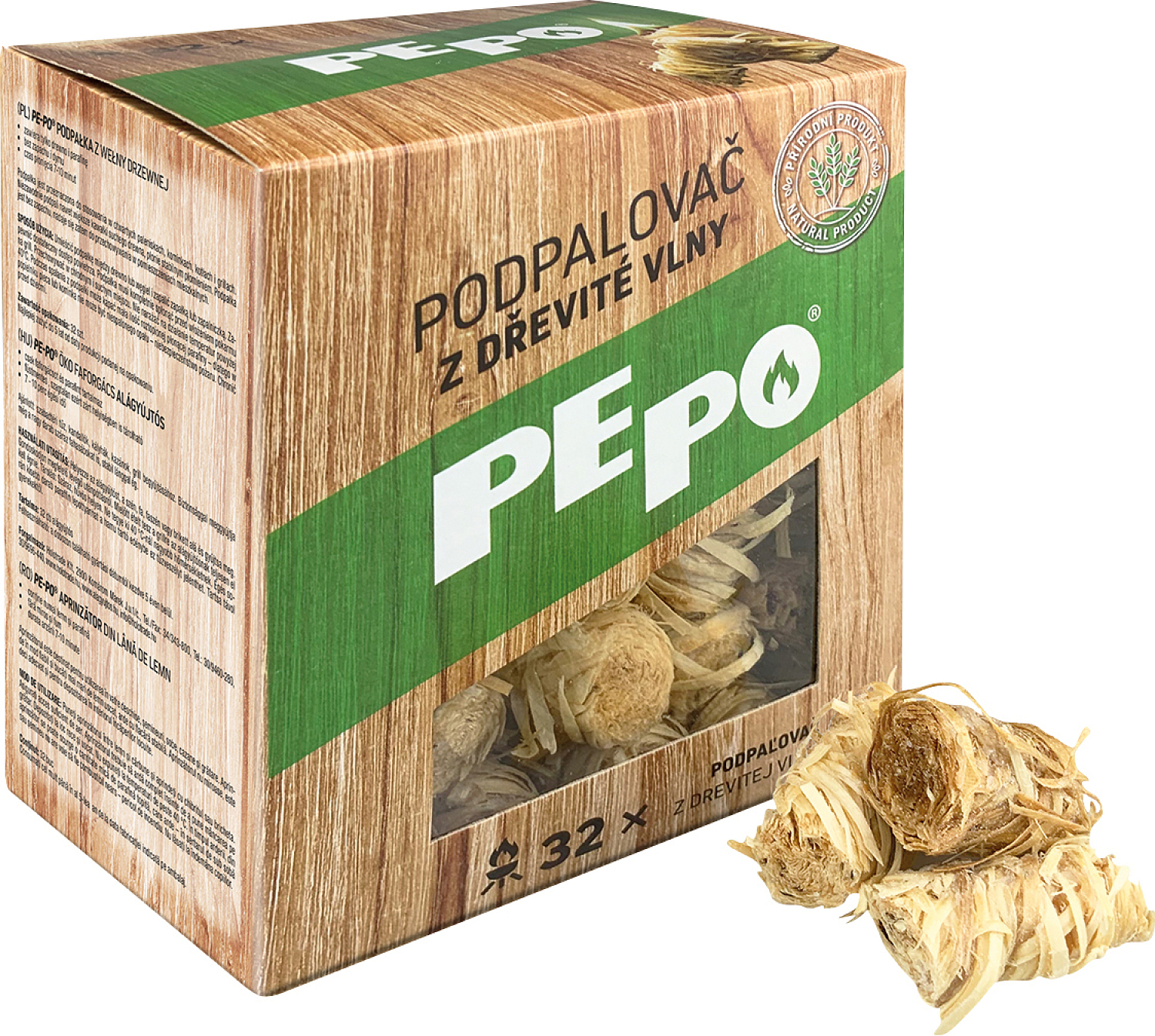 PE-PO Anzünder aus Holzfasern. Enthält nur in Paraffin getränkte Wickel aus Holzfasern. Dieser Anzünder pepo ist geeignet für die Lagerung in Wohnräumen.