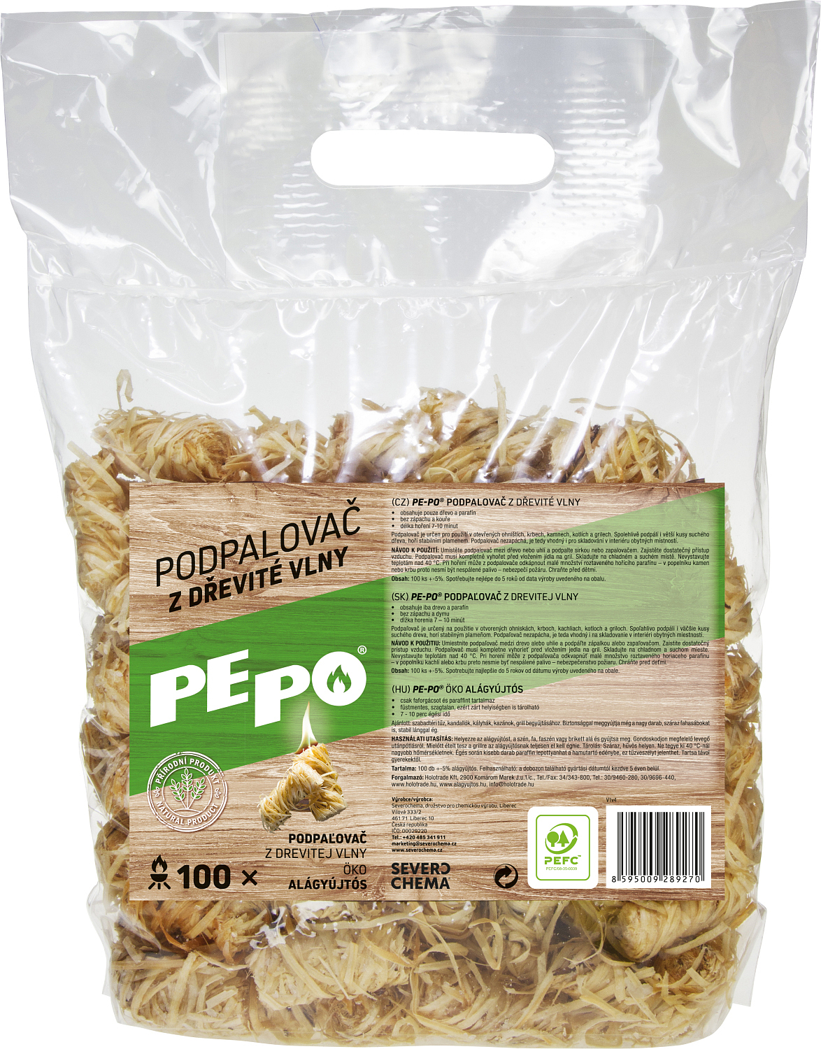 PE-PO Anzündhilfe aus Holzfaser. Enthält ausschließlich gewickelte Holzfaser, die mit Paraffin getränkt ist. Diese Anzündhilfe pepo eignet sich zur Lagerung im Innenbereich von Wohnräumen.