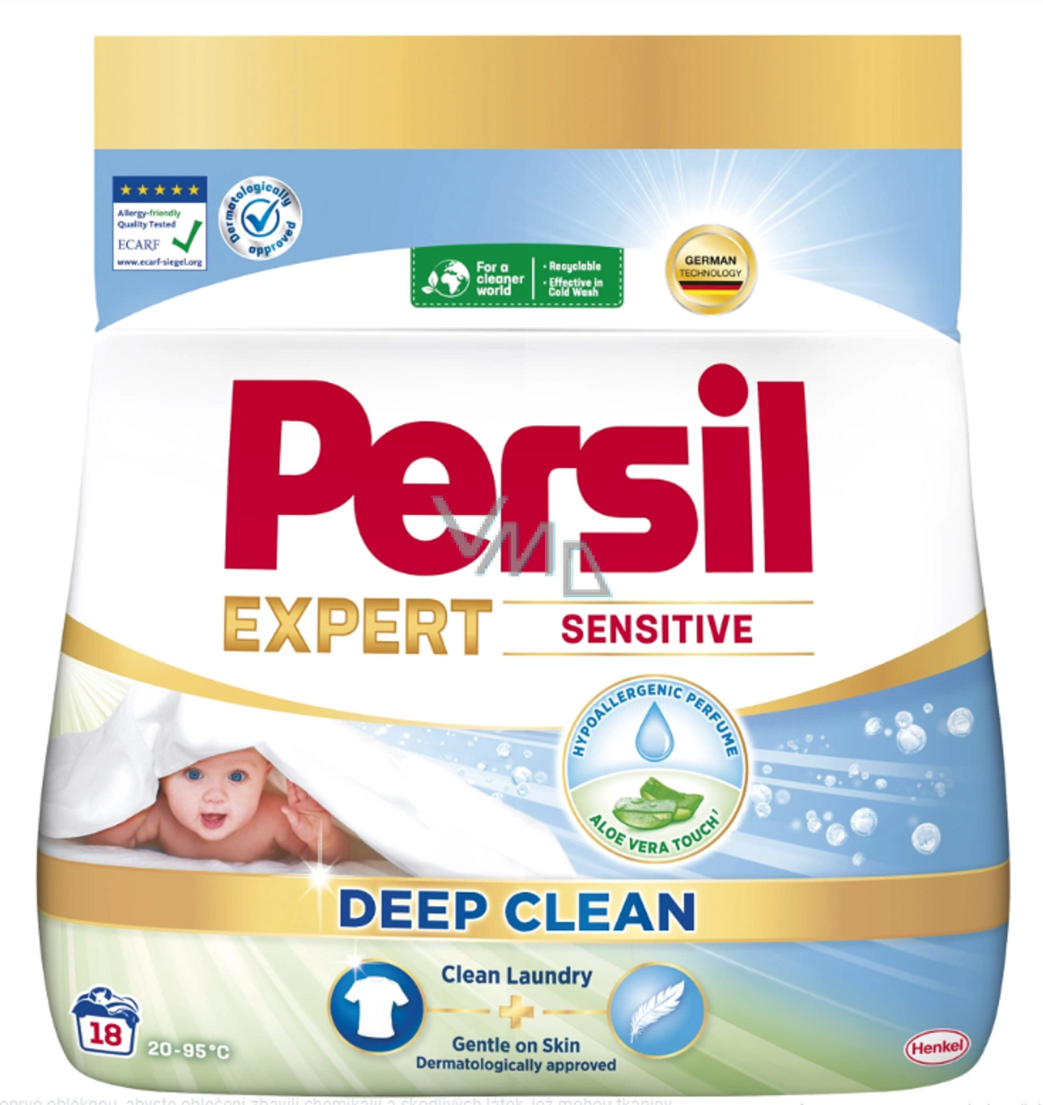Prací gel Persil Sensitive efektivně odstraňuje skvrny a zároveň je šetrný k pokožce. S přírodními mýdly a lehkou vůní Mandlového Mléka je vhodný i pro alergiky. Testováno ECARF a ověřeno dermatology. Nyní s koncentrovanějším složením, které je šetrnější k životnímu prostředí. Pro dětské a kojenecké oblečení doporučujeme prádlo prát při maximální možné teplotě před tím, než si jej poprvé obléknou, abyste oblečení zbavili chemikálií a škodlivých látek, jež mohou tkaniny obsahovat.