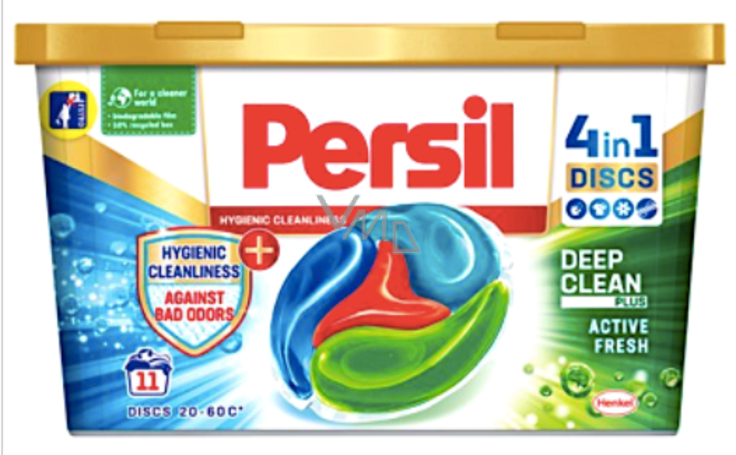 Persil DISCS 4v1 jsou první čtyřkomorové prací kapsle na světě! Každá prací komora propůjčí vašemu oblečení jedinečný benefit. Díky účinnému složení enzymů a tenzidů dosáhnete perfektního odstranění skvrn, zářivých barev, dlouhotrvající svěžesti, ochrany vláken a hygienické čistoty. Patentovaná technologie pronikne hluboko do vláken oblečení, kde dokáže neutralizovat nepříjemný zápach, a dokonce umí vytvořit ochrannou bariéru, která brání usazování nepříjemných pachových molekul. Zápach tedy pouze nepřekrývá, ale aktivně jej potlačuje a předchází tak načichnutí oblečení. Pro hygienicky čisté prádlo a perfektní čistotu důvěřujte Persil Discs 4v1 Hygienic Cleanliness.
