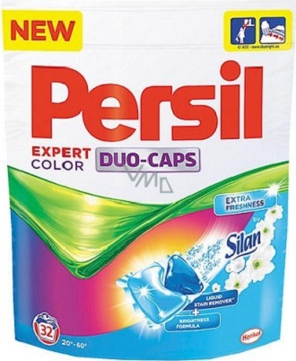 První dvoukomorová prací kapsle Persil Duo-Caps zajistí zářivé a dokonale čisté oblečení beze skvrn tím nejpohodlnějším způsobem. Díky použití nejnovější výrobní technologie jsou jednotlivé účinné složky v kapsli Persil Duo-Caps oddělené. Jsou tak zcela chráněny a uchovávají si 100% účinnost až do prvního kontaktu s vodou během pracího cyklu. Pak se okamžitě rozpouští.