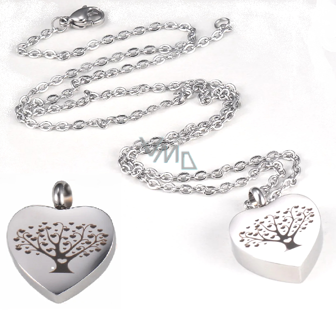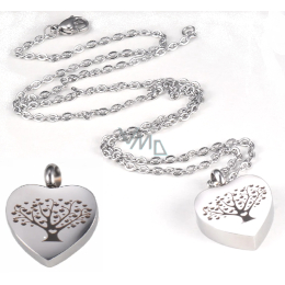 Urnen-Gedenkanhänger, Herz, Lebensbaum wasserdicht, Edelstahl 20 x 26 mm